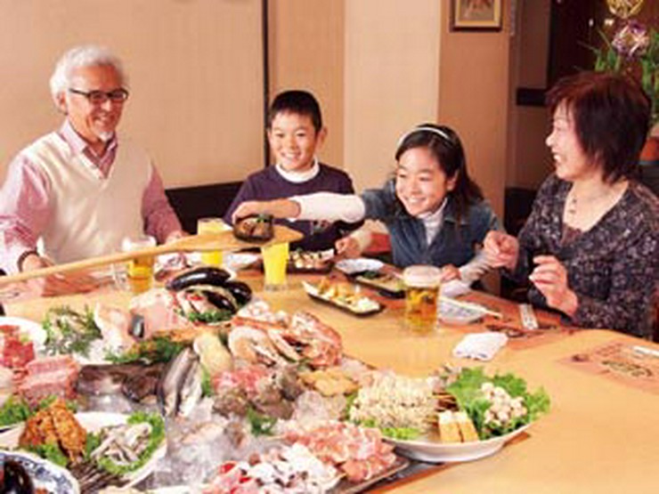 今では珍しくなった炉端焼きスタイルが若い方やファミリー、さらに外国からのお客様に大変喜ばれております。新鮮食材が豊富に並ぶネタ台や、商品を運ぶ大しゃもじなど老若男女問わず屋台の様に楽しんでいただけます