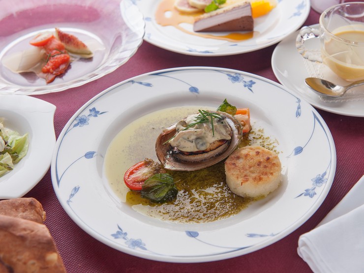 オードブル/スープ/アワビステーキ/サラダ/パン/デザート/コーヒ/4000円 シェフお勧めです。