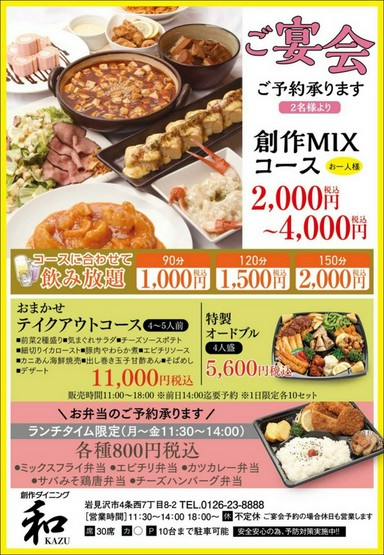 | 店名 | 創作ダイニング 和-KAZU- |