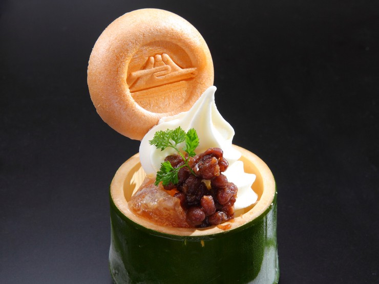 滋賀県朽木の宝牧場より直送された、搾りたての生乳でつくるソフトクリームが絶品。このソフトと自家製小豆、わらび餅を組み合わせたデザートが人気です。楽しいひと時の締めくくりに是非!