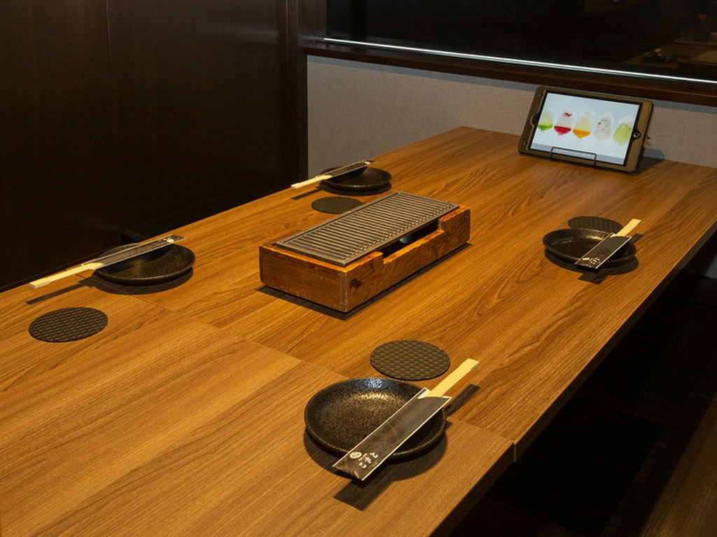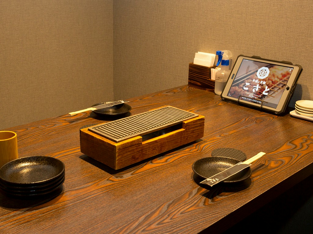 【串焼と釜飯こさと】の看板メニュー・串焼や釜飯を中心に、バラエティ豊かなメニューとドリンクを楽しめる充実のコース。席に座ったままタッチパネルでオーダーすれば、出来立てを運んでくれます。