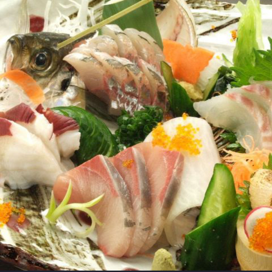 広電本線「八丁堀」駅から徒歩3分、商店街のど真ん中に立地。市場で毎日仕入れる旬の魚や、生簀で泳ぐ魚を目の前で豪快に料理する正統派の炉ばた焼き店です。客層は仕事帰りの男性客だけでなく、すぐそばにある福屋デパートでのショッピング帰りのミセス層も多く、熊本から直送で送られてくる馬肉や、ワラ焼きで豪快に仕上げる『かつおのたたき』が美味しいと評判。広々した店内は100名まで収容可能。座席はお一人さまや少人数向けのカウンター席、6人がゆったりくつろげる掘りごたつ席、プライベートな会合におすすめの完全個室など多彩。ちょい飲みからしっかり宴会まで、さまざまなシチュエーションで楽しめます。