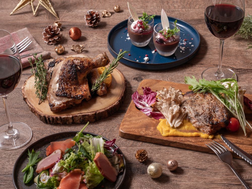 ジューシーな霧島オリーブ赤豚と大山鶏の薪火グリルや地元川越の厳選食材を使用し、見た目にも華やかな大皿料理でご提供します。薪火香る特製ボロネーズやパティシエ特製デザートまで、冬の贅沢を存分に味わいながら、クリスマスの特別なひとときをお楽しみください。