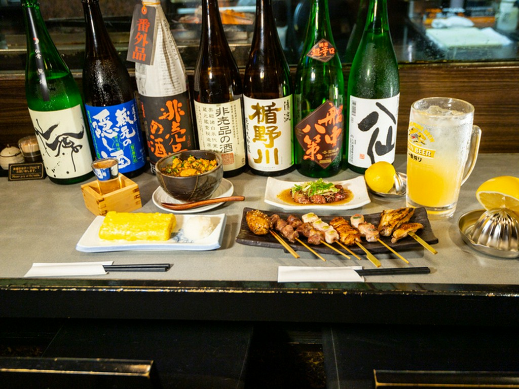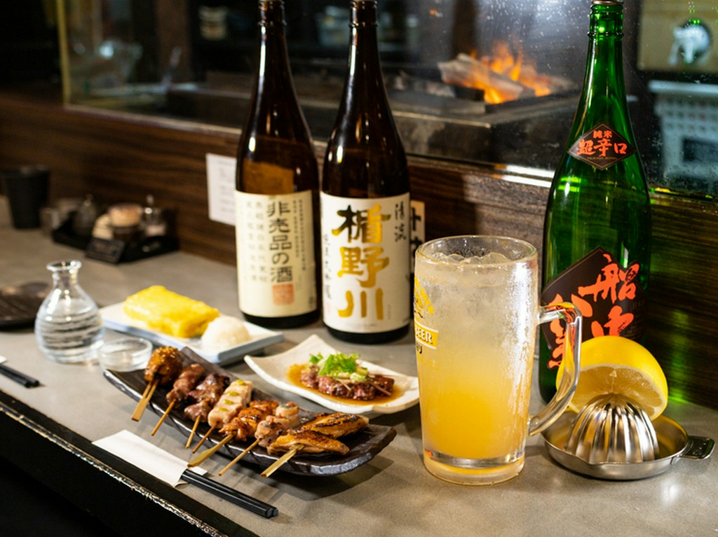 上前津駅から徒歩3分の【炭火焼鳥こっこ屋大須店】は、リーズナブルに串焼きが楽しめ、会社員の方から家族連れまで幅広い層から支持される串焼き店です。ハツ・肝といった定番人気の焼鳥はもちろん、野菜串も堪能できます。中でもたっぷりと肉のついた『やげん軟骨』は必食の逸品。柔らかい肉とコリコリとした軟骨の食感が合わさり絶妙な歯ごたえで、一度食べるとヤミツキに。創業から引き継がれる秘伝のタレは、串焼きのおいしさを引き立たせる絶妙な甘さと旨みを兼ね備えています。毎月替わる地酒は、串焼きとの相性抜群のものばかり。お酒好きの方にもオススメのお店です。