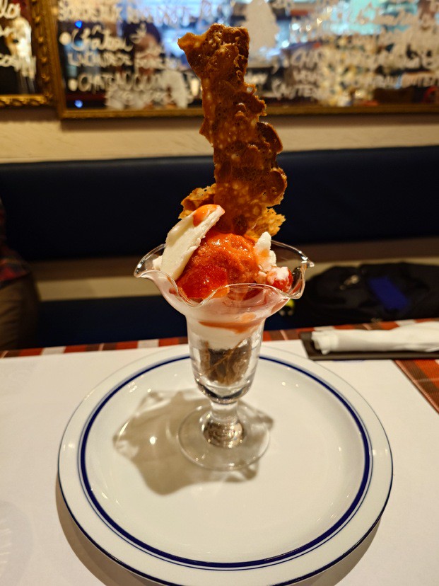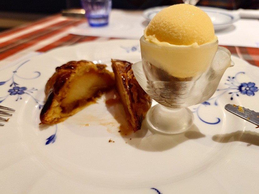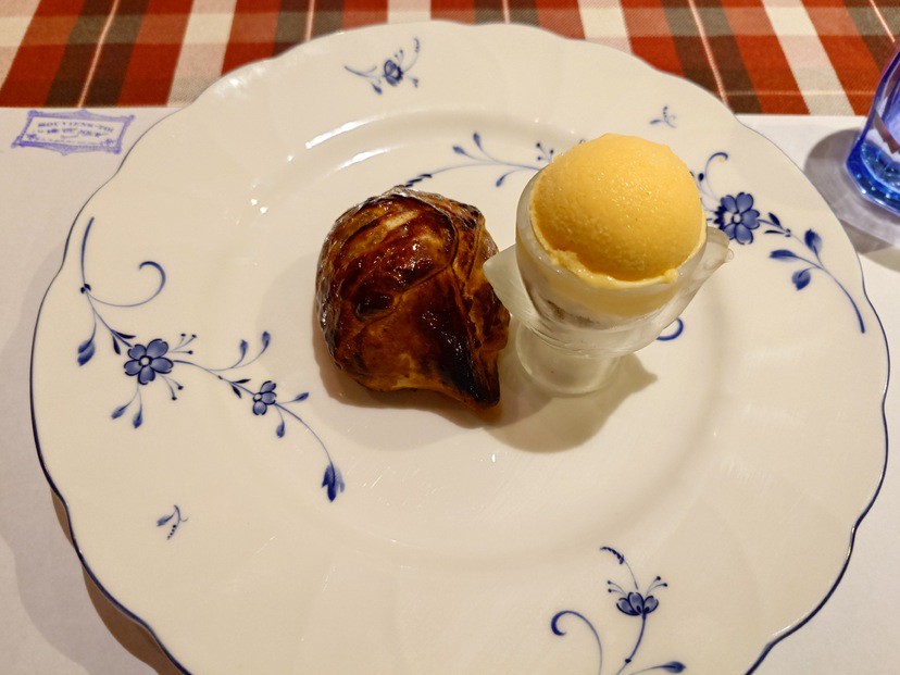 生きたオマール海老の蒸し焼きを、殻と魚介にブランデーを加えてパンチを出したソースで。プリプリの食感はやみつきになる美味しさ。コライユ(オメールエビのミソ)も添えられています。