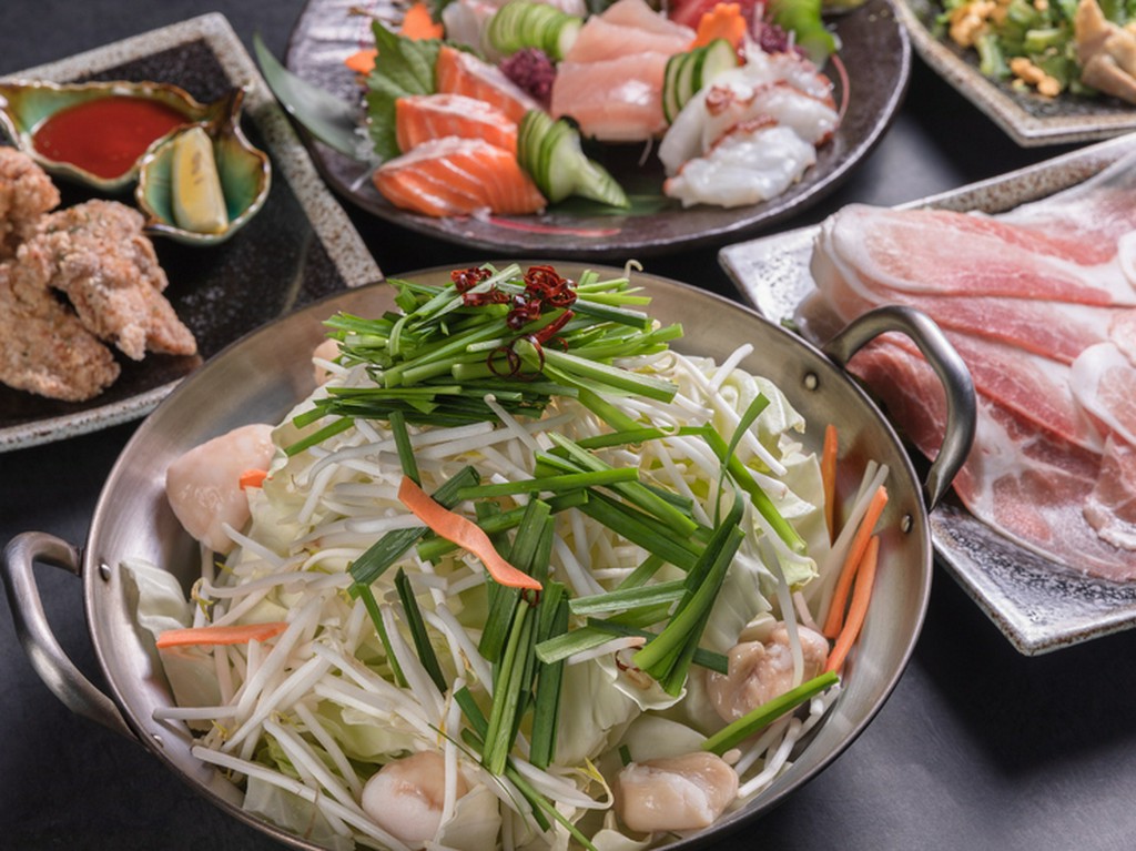 人気メニューのもつ鍋のほか、二日前までに予約のちゃんこ鍋などおいしい鍋料理の楽しめる居酒屋です。それに加えて、新鮮な沖縄の近海魚を使ったお刺身や、チャンプルなど沖縄料理をはじめとした居酒屋メニューも好評。明るくて賑やかな雰囲気の店内は、友人との食事や女子会、宴会などに利用できます。宴会には『県産黒毛和牛もつ鍋コース』が人気で 、県産の黒毛和牛のマルチョウは歯ごたえがありつつも歯切れがよく、モツの旨みがしみ出したスープは身体に染み入るおいしさです。海老の大きさにとことんまでこだわったという『天むす』や、旨みが凝縮された広島産の牡蠣の『カキフライ』など一品料理にもこだわりが詰まっています。