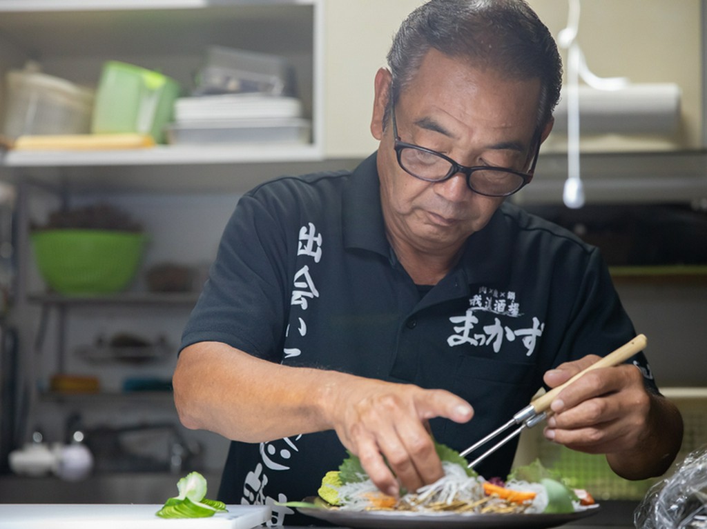 1985年生まれ、沖縄県出身。小さい頃から相撲を続けており、高校生の時監督の家で下宿した際に、料理をつくったことから調理や食べ物を提供する楽しさを知る。また、母親が沖縄料理の食堂をやっていたこともあり、おいしい沖縄料理を人に食べてもらいたいという思いを持つ。その後店で働きながら腕を磨き、2019年11月に 【我流酒場 まっかず】をオープンした。鍋料理をメインに気軽に居酒屋使いもできる酒場を目指している。