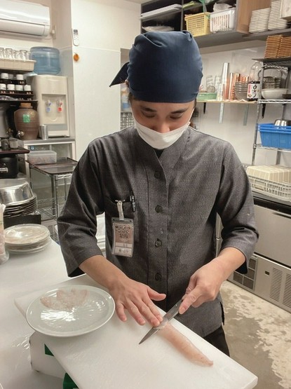 1987年、大阪府生まれ。大阪エリアの和食店で実力を磨いてきた、和食ひと筋の料理人。2021年より【磯笛】料理人として活躍中。いけすから上げたばかりの鮮魚をその場で捌き、ゲストの目の前で焼き上げる炭火焼など、臨場感あるもてなしも【磯笛】の醍醐味。ゲストとの距離感も意識し、五感を楽しませる逸品を提供している。