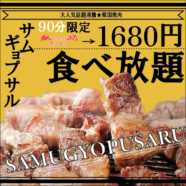 ≪一押し≫<サムギョプサル90分食べ放題コース>3980円⇒1680円 +1000円で[飲放]付