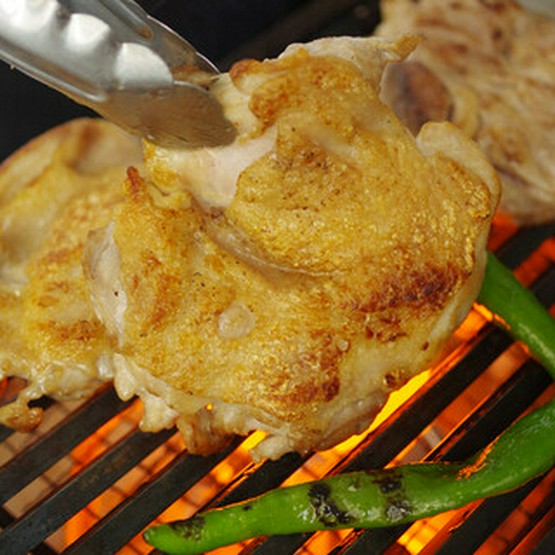 【強肴】博多地鶏もも一枚炙り焼き、京都祇園原了郭黒七味、山椒と共に
