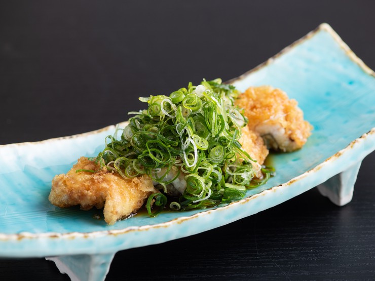 一本揚げした地穴子にタレを絡め、たっぷりの九条葱をのせた逸品。お店自慢の穴子に、醤油をベースにやや甘めに仕立てたタレの香ばしさと、九条葱の食感が加わり、絶妙な味わいを楽しめます。