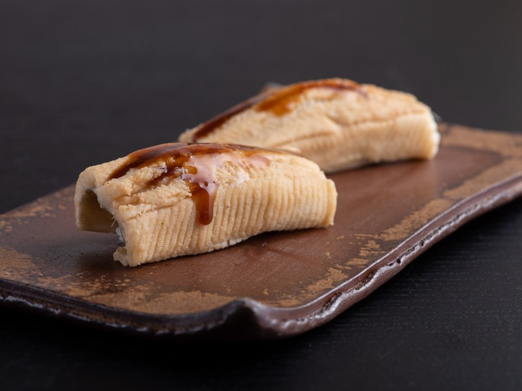 お店名物の“とろける蒸し穴子のにぎり”。口に入れた瞬間にとろけるような繊細な食感が魅力的。穴子からとったダシを煮詰めた特製ダレが、穴子の味わいをさらに印象深く演出してくれます。