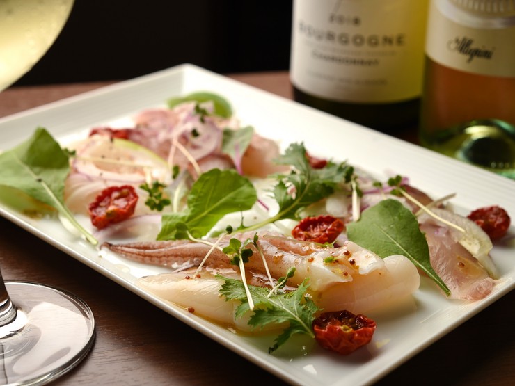 その日おすすめの魚を3~4種類盛り合わせた、町家バル定番のカルパッチョです。