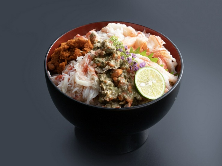 浜茹でした 親がに(雌の松葉蟹)と松葉蟹の身をふんだんに使用した、 冬のこの季節だけ味わえる絶品丼。 素材の甘さと旨味が一椀に広がる、まず食べてほしい定番の贅沢。 親がにの出汁がたっぷり染みでた特製“かに汁”付き。