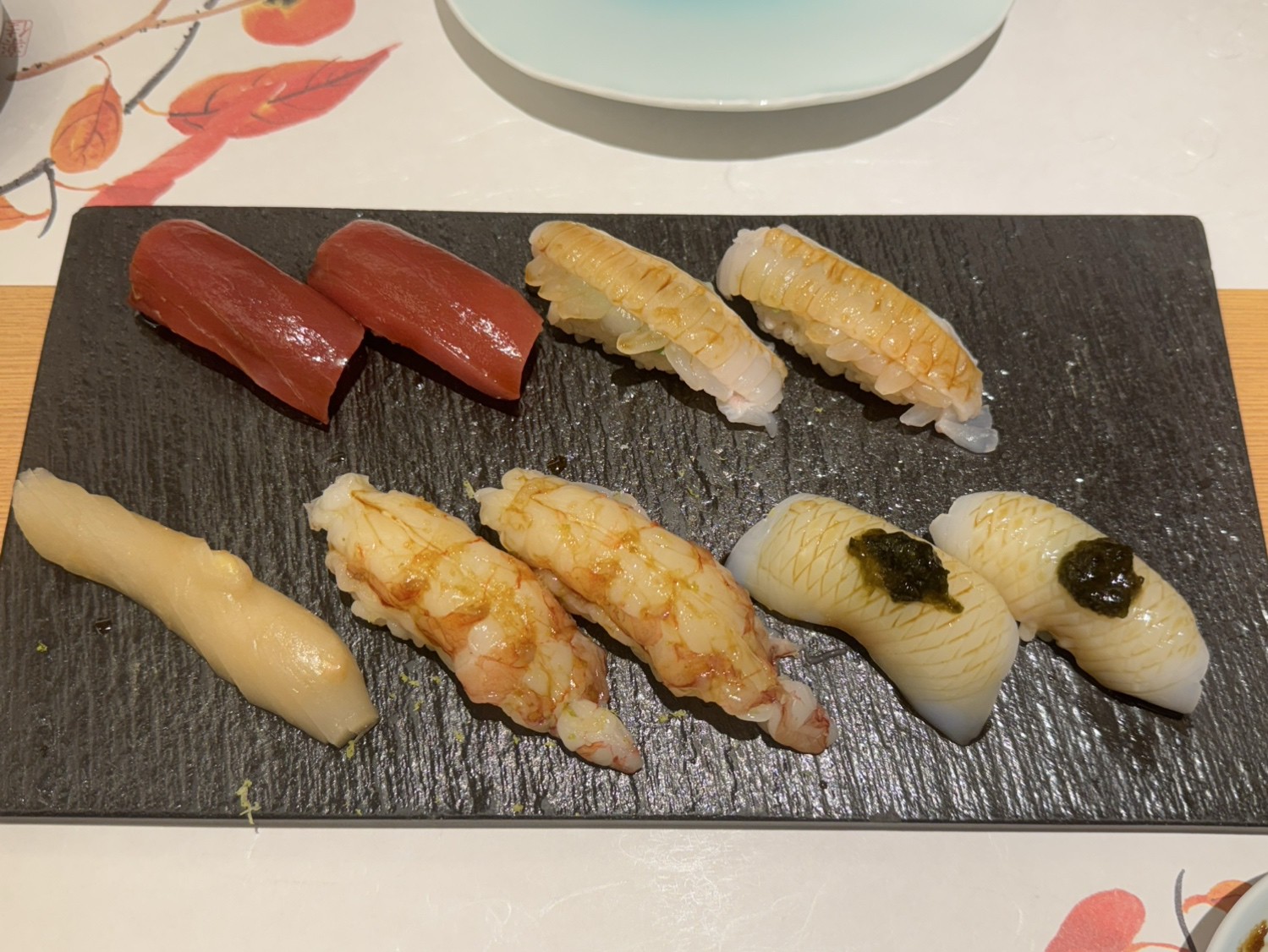 先付け、鮨10貫(巻物含む)、汁物、デザート