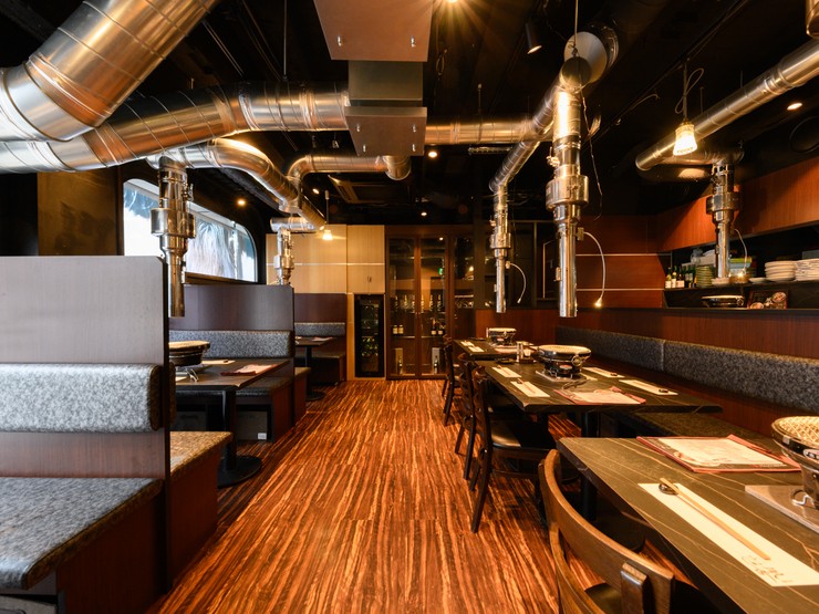 タンを味わい尽くすことができる、タン好きにはたまらない【炭火焼肉 胤舌 -shintan-】。オススメは『葱サンドタン』。厚切りタンの間にオリジナルの葱塩だれを挟んでおり、炭火で焼いてそのまま口へと運びます。また、〆に選ばれがちな『冷麺』がお目当ての人も多数。料理人が毎日だしを引き、そのだしの旨みと柑橘香る和の風味豊かな『冷麺』を堪能できます。お肉に合うワインや果実酒が豊富に揃っているので、女性グループも多いとか。器には伊万里焼などの伝統的な焼物が使われており、料理を視覚から一段階引き上げます。店内はブラウン系で統一され、上品で落ち着いた空間。デート、接待、記念日など大事な日に訪れたい焼肉店です。