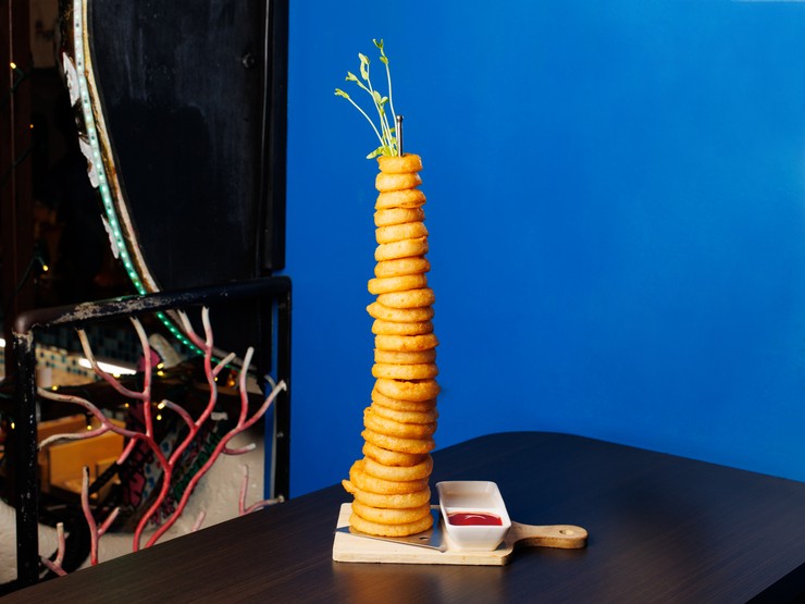 驚くべき高さ30cm!サクサク食感で止まらないおいしさ『オニオンリングタワー』