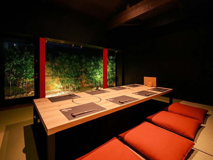 代官山駅から徒歩3分とアクセスに恵まれた和の空間で、優雅に食事を楽しめる一軒家。畜産農家と提携し誕生した新ブランド「龍樹ビーフ」「龍樹ポーク」での、贅沢なしゃぶしゃぶを提供しているお店です。メニューは完全予約制のコースのみ。【龍樹】だからこそ実現できる極上素材のしゃぶしゃぶ・旬の逸品を、選び抜かれた日本酒や、五大シャトーをはじめとしたソムリエ厳選ワイン・シャンパンと共に味わえます。掛け軸や甲冑・刀などこだわりの作品たちが見守る店内は、日本の伝統を五感で楽しめる空間。カウンター席に、2名から利用できる完全個室、8名までの広々とした半個室も完備されており、接待や会食、大切な人との記念日にも最適です。