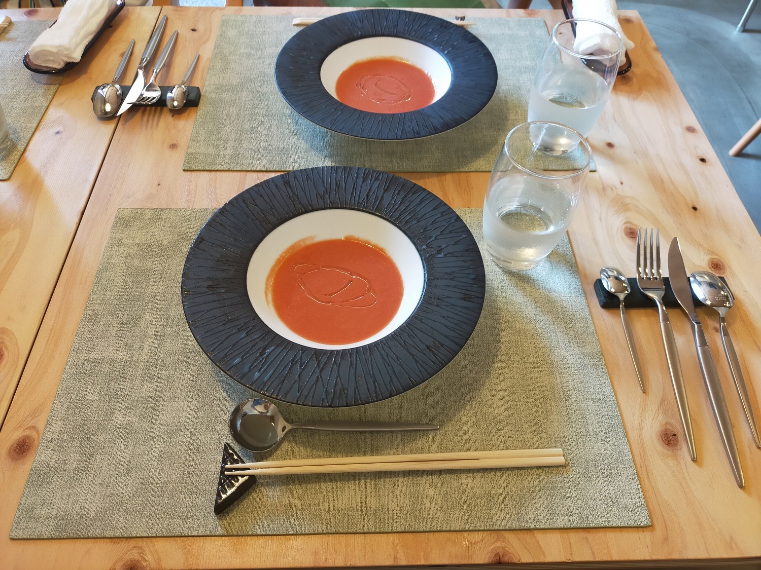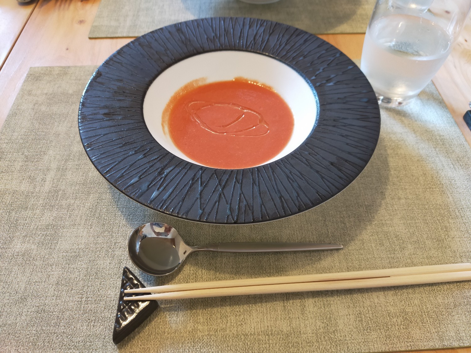 昼・夜のコースに共通の一品。食材本来の味を丁寧に引き出したおいしさは、飲むというより、まさに“食べる”スープ!写真の例は『人参のポタージュ』で、クルトンの代わりに千葉県産落花生をきかせた風味も格別。