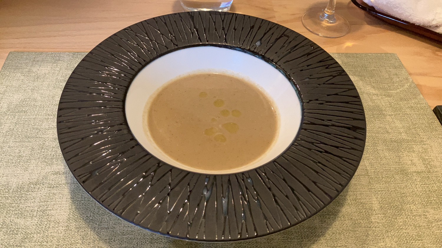 昼・夜のコースに共通の一品。食材本来の味を丁寧に引き出したおいしさは、飲むというより、まさに“食べる”スープ!写真の例は『人参のポタージュ』で、クルトンの代わりに千葉県産落花生をきかせた風味も格別。