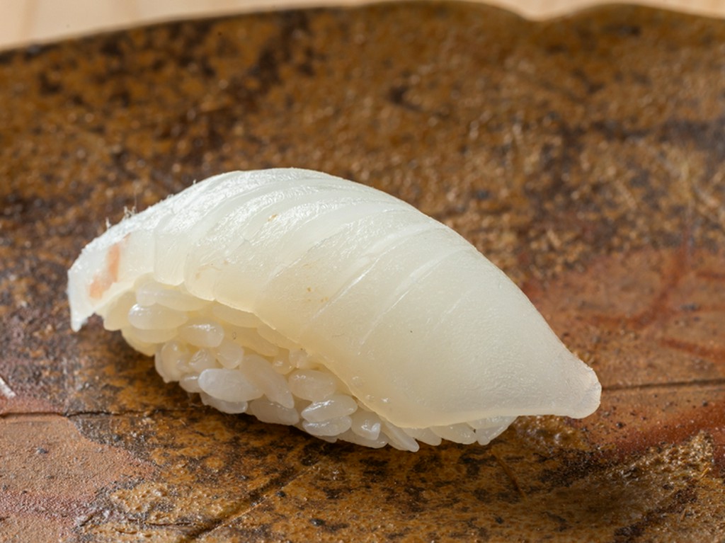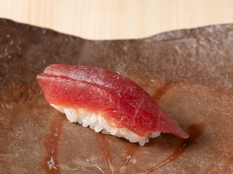 多彩なネタの中でも評判の一貫。京都の鮪専門仲卸から仕入れるその時季一番の鮪を使い、素材の状態を見極め、程良くねかして極上のネタに。上品な脂の甘みと旨み、シャリとの一体感が絶妙で、余韻の深さも格別です。