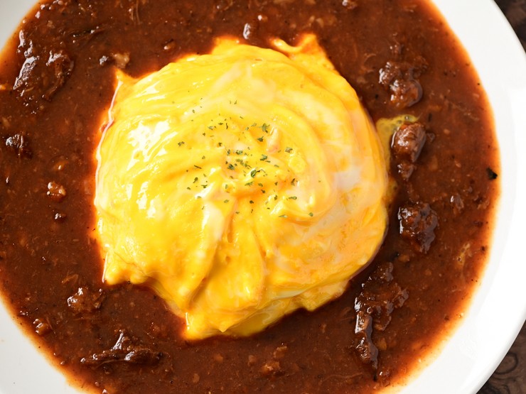 じっくり煮込んだ自家製デミグラスソースと、ふわとろ卵のハーモニー。隠し味に赤ワインとバターを加えることで、洋食店さながらのクオリティを実現。一度食べるとヤミツキに。リピーター続出の看板メニューです。
