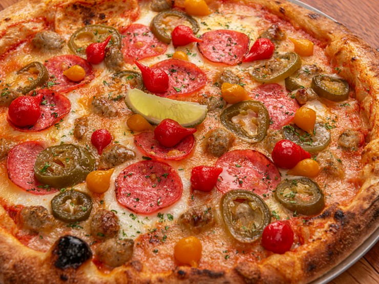 イタリアンソーセージ、ペパロニ、濃厚チーズの旨味と、二色のドロップペッパー、ハラペーニョの刺激がガツンと響く逸品。ビールとの相性は反則級。BBCの看板にふさわしい、ヤミツキになるおいしさの名物ピザです。