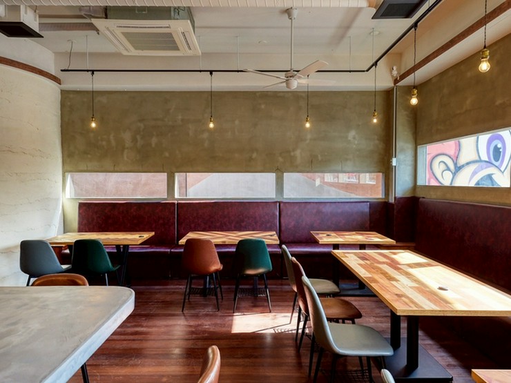キッチン業務に加え、店舗の立ち上げ・メニュー開発にも携わる。【Big Bite Chatan】では、アメリカと沖縄のミックススタイルをテーマにしたメニューと、外観のグラフィック・内観は沖縄の漆喰を取り入れるなど、多彩な食を楽しむ空間を提案している。
