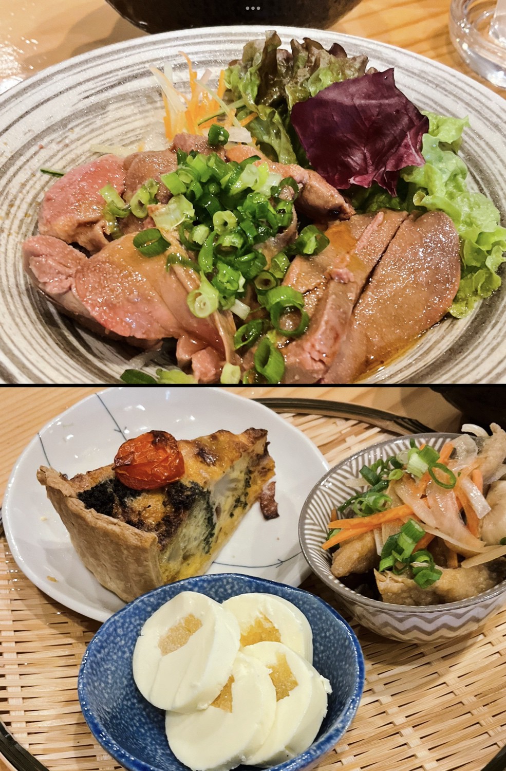 山口線、湯田温泉駅から徒歩5分。オーナー阿部氏は地元有名料亭5代目、料理人佐藤氏はフランス料理歴40年以上のベテラン、畑の違う二人のノウハウや強み、魅力を掛け合わせ、気軽に立ち寄れる一軒家居酒屋が【ニジノアト】です。明るく開放的な雰囲気の中、地魚や旬の野菜を使い、和食や和洋食、フランス料理と幅広いメニューを提供しています。店内を彩る壁一面を大きく使った虹色のアイコニックな壁画は、阿部氏の知人デザイナーが店名からインスピレーションを得て描いたもの。入り口脇にある大きな特注ワインセラーには、ワインやこだわりの日本酒、冷製の前菜などが並んでいます。グループでも一人でも、気軽に楽しめるお店です。