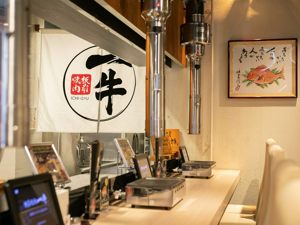 現地へ足を運び、全国の産地から極上黒毛和牛を一頭買いし、職人技で肉を一枚ずつ丁寧に手切りしていく【板前焼肉一牛本店】。オーダーを受けてから肉塊をカットしているため、鮮度抜群の牛肉を味わうことができます。バリエーション豊かな部位を圧倒的なコストパフォーマンスでいただけるのが最大の魅力です。口の中でとろけてしまう『シャトーブリアン』や分厚くても柔らかくあっという間に食べきれてしまう極上肉は、まさに至極の味わい。大きな一枚肉を豪快に焼き上げてハサミで好みのサイズにカットできるのも、大ぶりにカットされているからこその醍醐味です。白を基調とした明るい店内は、接待や家族のだんらんにもふさわしい空間です。