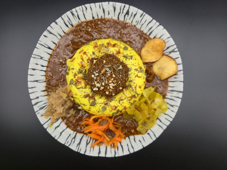 キーマカレーと岩手前沢牛の大人のカレーを合い掛けしモルネーソース(チーズベシャメル)をトッピング