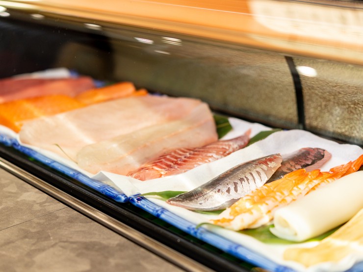 寿司や刺身のネタや理その他魚介料理には、市場直送で鮮度抜群の旬素材を使用。特にまぐろは和歌山や三重など日本近海の生まぐろにこだわって仕入れています。旬素材ならではの活きの良さを堪能できます。