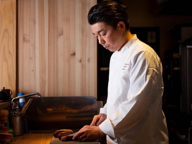 1978年、熊本県出身。【花小町】オーナーシェフ。高校卒業後、フレンチを中心に幅広いジャンルの腕を磨く。26歳の時、生まれ故郷に今の店を創業して独立。長年にわたりお付き合いする熊本の生産者と地物の食材を使い、自ら小麦·大豆等を育て、醤油や調味料を仕込み、熊本に伝わる伝承伝統料理をモチーフとした新しい郷土の料理を提唱する。人の手を紡いできた土地独自のコース料理で、県内外の人を魅了する。