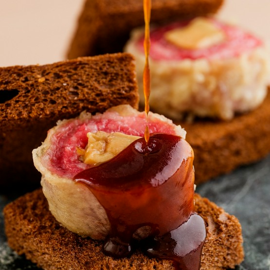 類を見ない贅沢さ『和牛のちかみつ雲丹ユッケドッグ ~銘柄別雲丹の2種乗せ~』