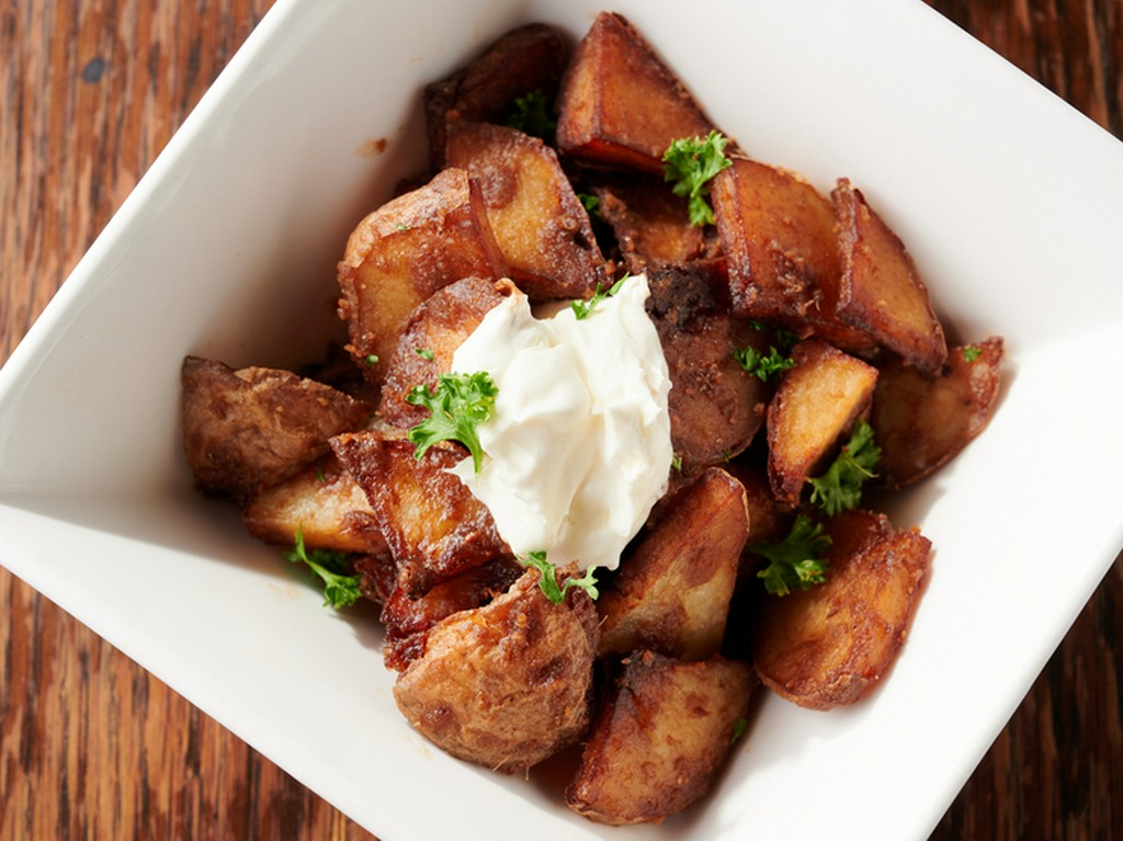 オープン当初から愛され続けている、人気のタパス。この味を求めて通う人もいるほど。アンチョビのきいたポテトは、サワークリームと共に食べることで味の変化が楽しめるのも魅力です。
