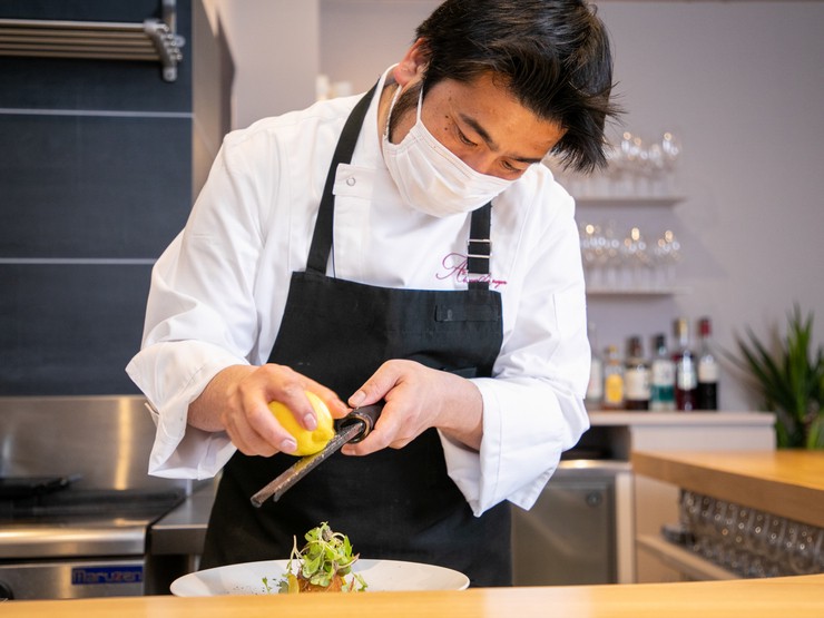 1978年、広島県出身。両親・祖父母共に料理好きの家庭で育ち、自然と料理の道を志す。広島市のホテルレストランでキャリアをスタートし、西洋料理の技を修得。その後、中区のフレンチ【R・Gerant(現 ル・トルヴェール)】の立ち上げに参画し、シェフとして活躍する。バンケットなどでも腕をふるった後、2021年3月に今の店を創業して独立。確かな技と冴え渡るセンスが融合した独自の皿でファンを増やす日々。