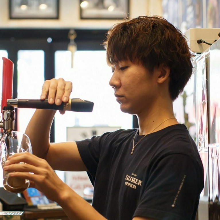 元々は美容師だったがヨーロッパ訪問中にアイリッシュパブに出合い、大人の社交場としてのパブの楽しさに目覚める。帰国後、地元福岡のアイリッシュパブで働き始め、パブの楽しさを伝えたいと沖縄に渡り、現在エリアマネジャーとして運営を任されている。