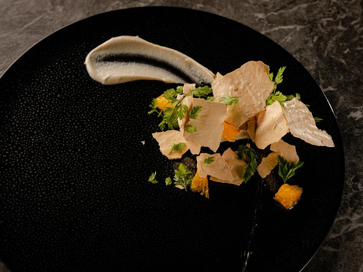 口に入れるとクリームがとろーりではなく、ほぼカニ!このように「既視感がありながら予想を裏切る味わい」もシェフのテーマ。料理は季節で変わりますが、ウィットの効かせ方に注目したいお皿です。