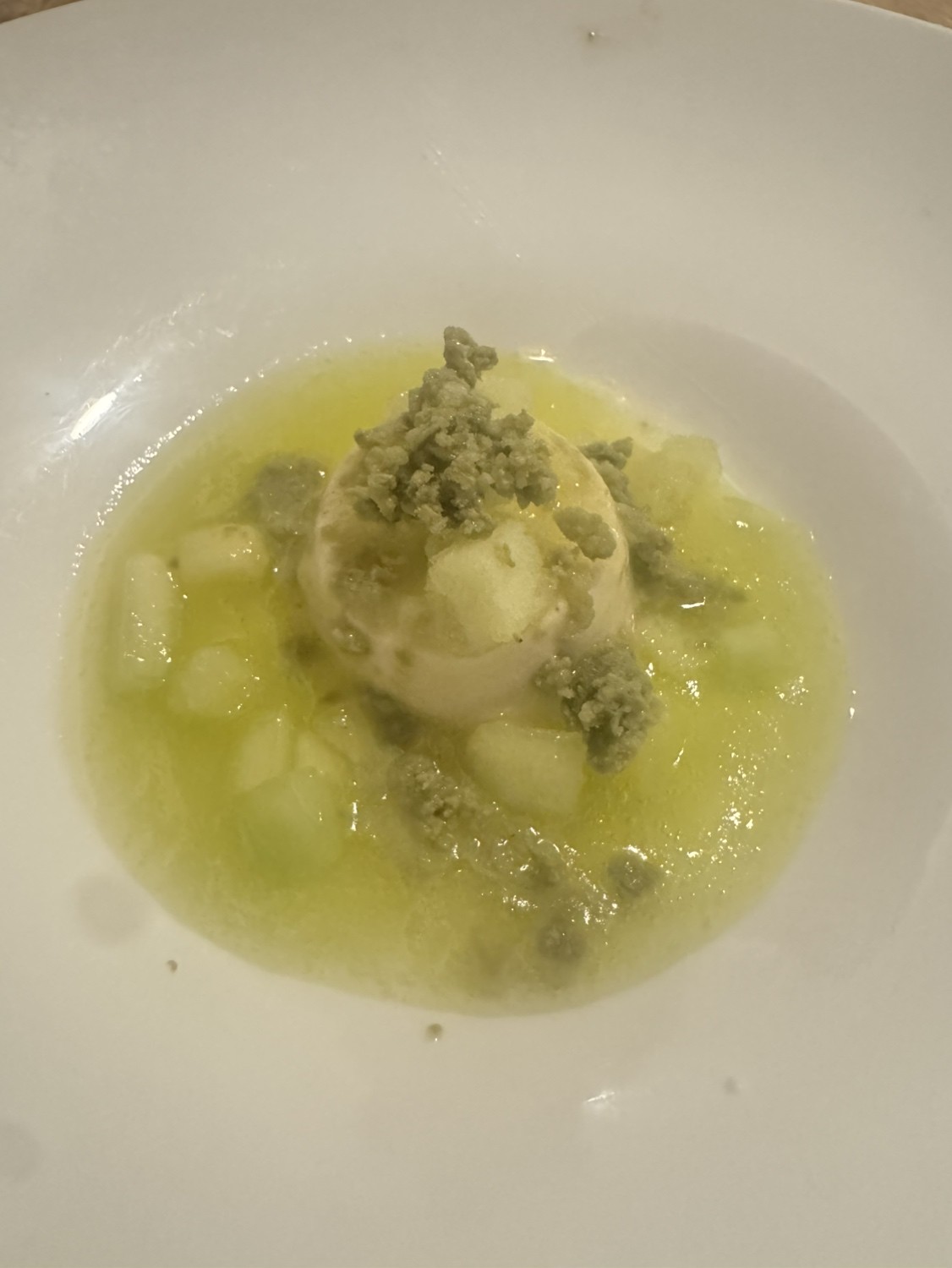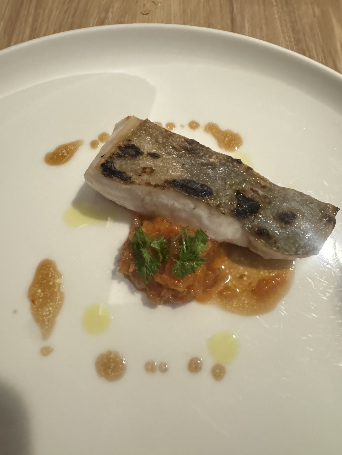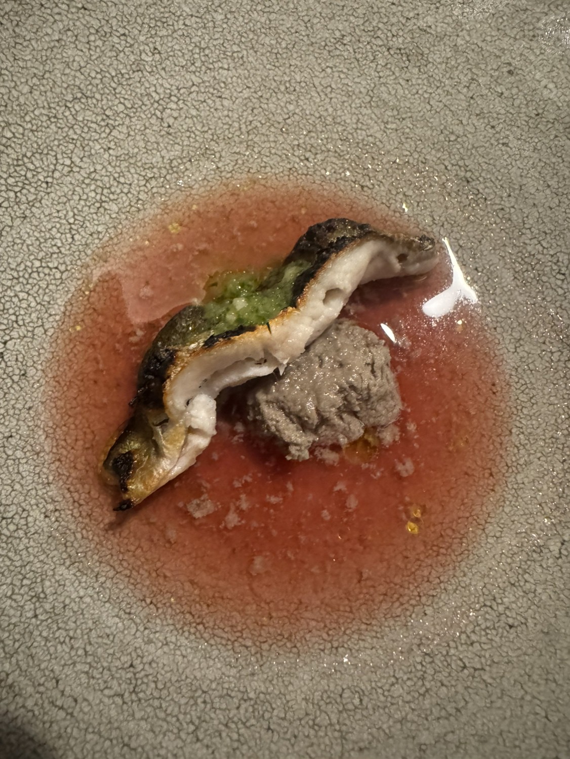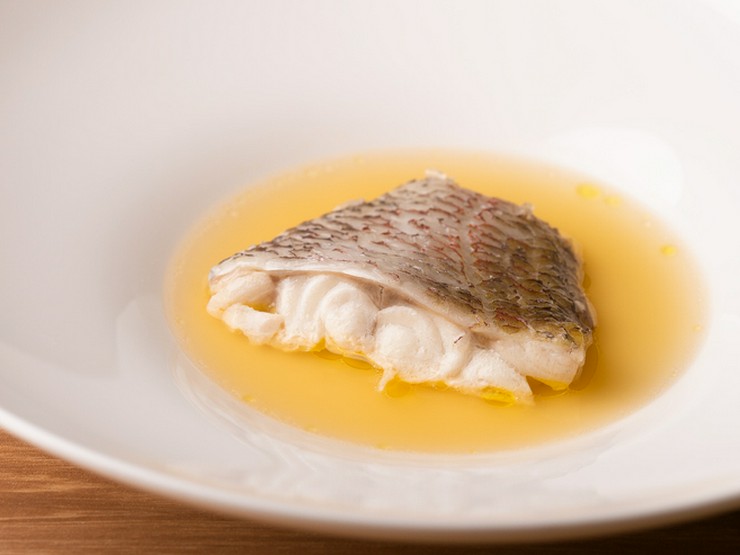 甘鯛、アカムツなどその日一番の白身魚を丁寧に手当てし、塩をしたらあとは、丁寧に取った魚のだしとともにヴァポーレ(蒸す)。香り、旨味を繊細な身の食感など食材の真髄に触れることができる仕上がりです。