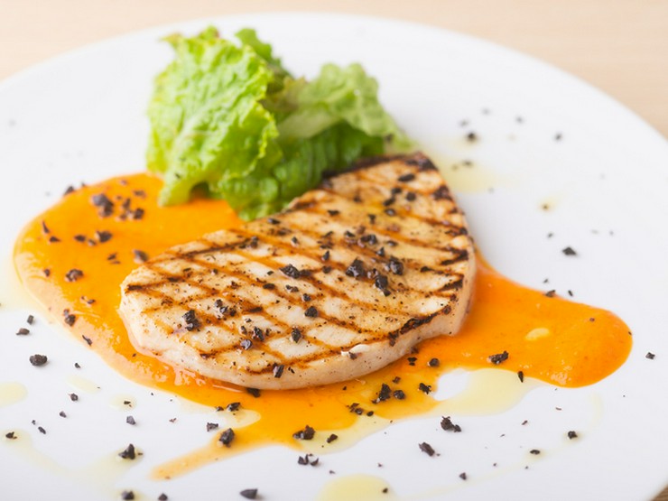 素材を生かして、軽やかに仕上げたメインディッシュ。『メカジキのグリル パプリカのソース』