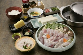 ■フグの皮の湯びき ■てっさ ■てっちり ■ぞうすい ■フルーツ +500円でからあげ付