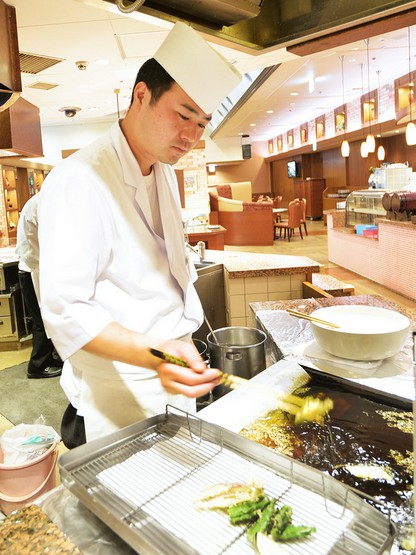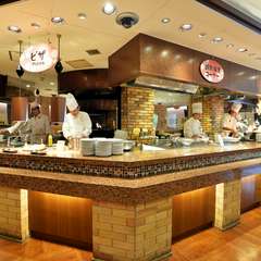 【いいざか花ももの湯】の「ライブキッチン花もも」は、焼き立ての石釜ピザや揚げたての天ぷら、あおりたての中華料理などが、オープンキッチンの中の料理人たちによって調理後すぐに出される、バイキングスタイルのレストランです。メニューは季節によって変わり、和洋中と多彩なメニューを取り揃えております。スイーツメニューも充実しております。「花ももの湯」入館料に、ランチバイキングがついたお得なセットがおすすめです。