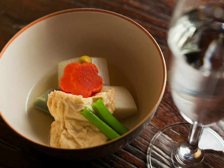 JR北鎌倉駅の目の前にありながら、落ち着いた雰囲気で日本料理の粋を楽しめる【北鎌倉 円】。つるし飾りの綾なす階段を上っていくと、金箔を施した天井が美しい数寄屋造りの空間が広がっています。といっても、わずか16席のこぢんまりとした店内には家庭的な温かさもあり、女将の優しい笑顔ともてなしがゲストの緊張を解きほぐしてくれます。料理は日本料理の名店【辻留】で修業を積んだ店主と2代目の親子が腕を振るう懐石料理。先付けに焼き物、炊き合わせなどその一品一品は、職人の技をしっかりと落とし込んだ、素材の魅力を最大限に引き出したものです。窓の外に広がる円覚寺の白鷺池を眺めながら、洗練の味を楽しめます。
