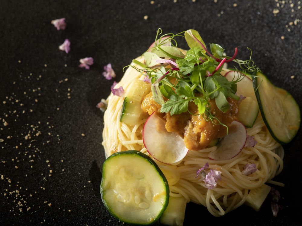 地上221mの景色と共に、季節の食材で仕上げたコースをお楽しみください。