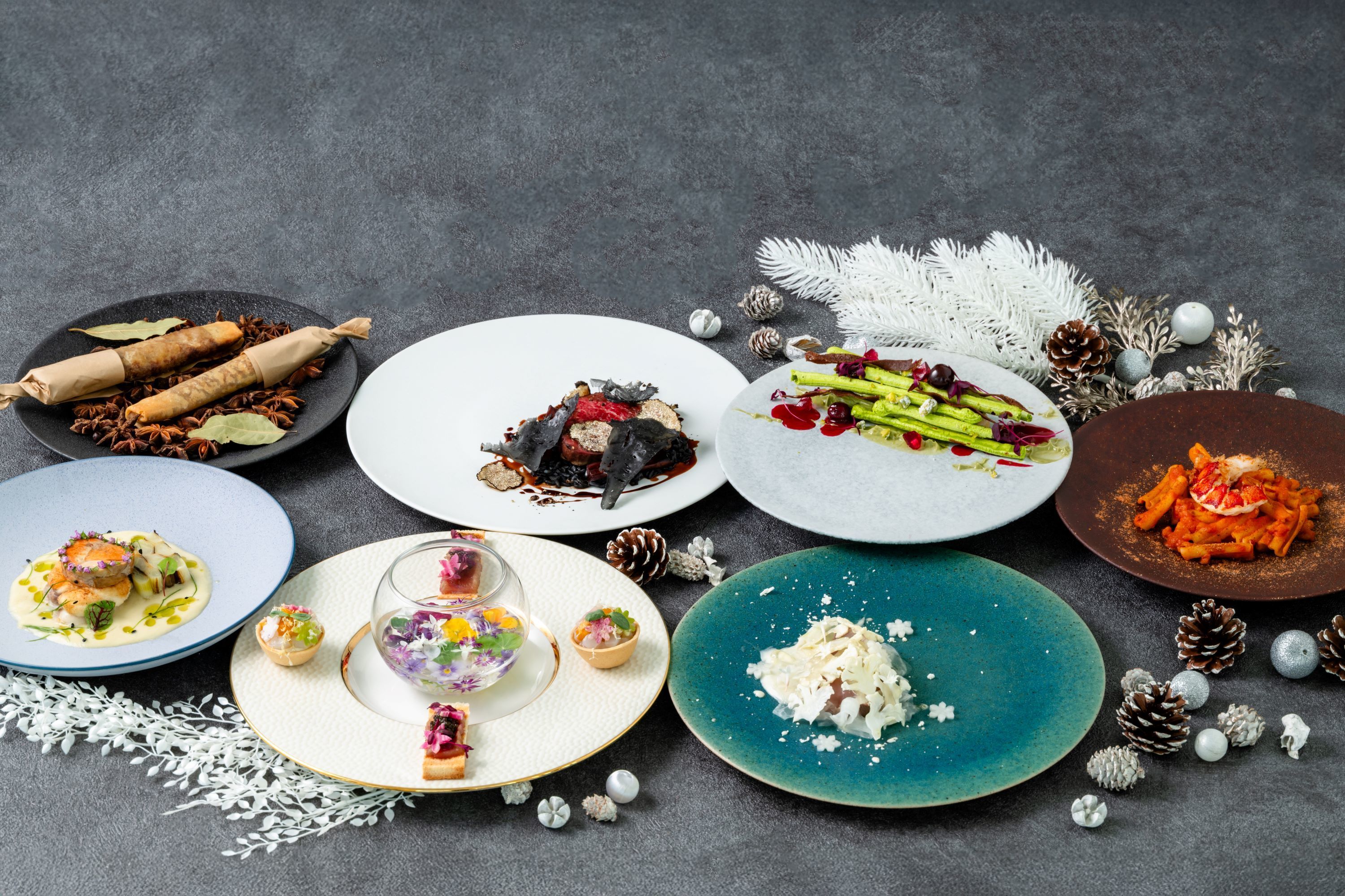 クリスマス期間限定の特別なディナーをご用意しました。ウィンタートリュフの芳醇な香りを添えた国産牛フィレ肉や、香ばしく焼き上げたオマール海老をのせたショートパスタなど贅沢な全8品をお楽しみいただけます。心に残る特別なクリスマスのひとときをお過ごしください。