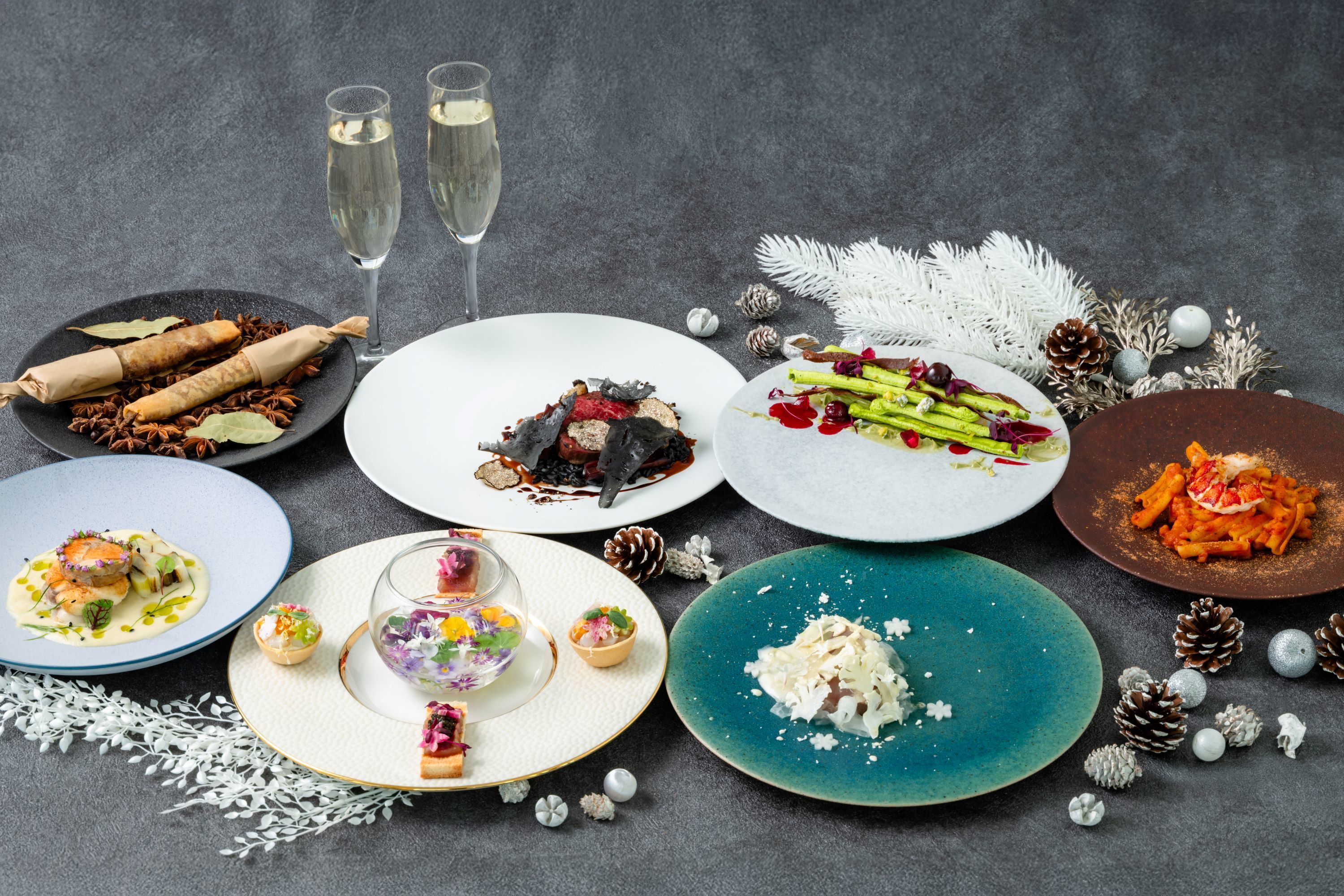 地上221mからのダイナミックな夜景を一望できる窓際席でお過ごしいただける、クリスマス期間限定プランです。ウィンタートリュフの芳醇な香りを添えた国産牛フィレ肉や、香ばしく焼き上げたオマール海老をのせたショートパスタなど贅沢な全8品をお楽しみいただけます。地上221mから見渡す東京の夜景とともに、心に残る特別なクリスマスのひとときをお過ごしください。