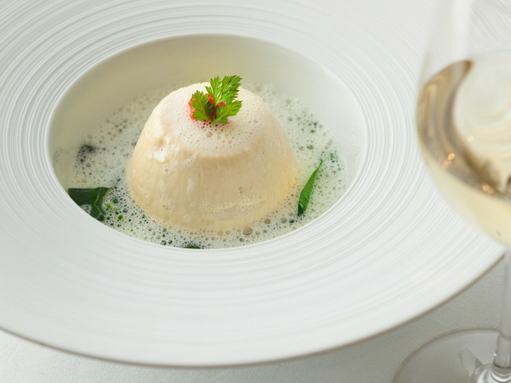 本店のスペシャリテのひとつ『グルヌイユのムースリーヌ‘ポールエーベルラン’』