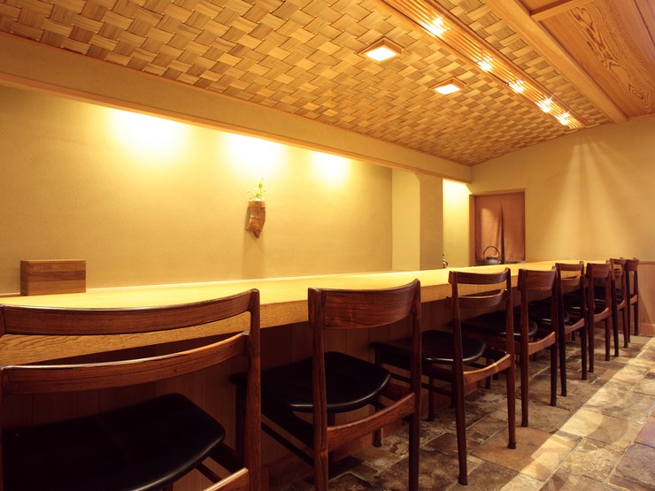 ごだんとは後段の茶事から。正式なお茶会のあとの少し寛いだ一席、というような意味でしょうか。主人・宮澤政人さんが、かの名店【じき宮ざわ】を弟子に託し、【ごだん宮ざわ】を開店したのは2014年のこと。『おまかせ』でその日その日の旬を楽しませくれます。茶懐石の出張料理店などでみっちり修業した宮澤さんの料理は、素材の風味を素直に生かすことを追求しながら、素材と素材の採り合わせ、料理法などに独自の工夫が施されているのが特色。和洋の骨董の器などに端正に盛り付けられます。茶室を思わせる空間はほどよい緊張感と上質の快さを併せ持ち、窯炊きのご飯、宮澤さん自らのお点前による抹茶とお菓子まで、静かな感動が続きます。