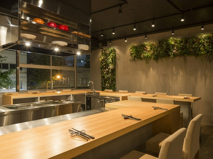 店内は、オープンキッチンから360°見渡せるカウンターがメインの開放的なつくり。料理ができていく様を見ながら待つワクワク感が、2人のムードを盛り上げます。