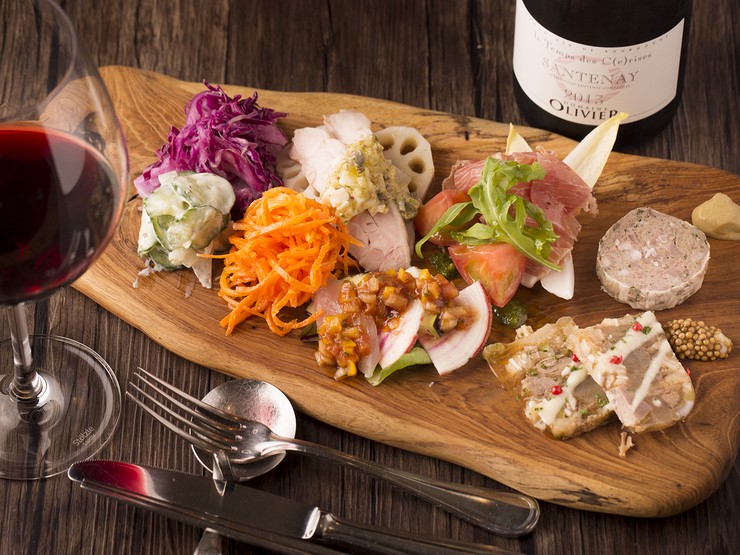 前菜はシェフの腕の見せどころ。旬の食材を積極的に使い、日替わりで肉料理、海鮮、有機野菜などを10~13品、たっぷり2人前程度盛り合わせています。シェアして口に運べばシェフのこだわりと心意気が実感できます。